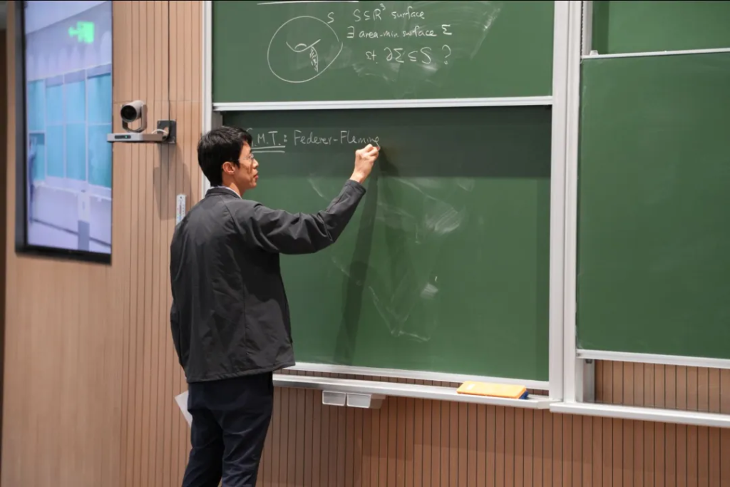 随后,孙理察Richard Schoen教授以“由极值特征值问题定义的极小曲面”为题进行了学术报告。他以清晰的思路和细致的推导,介绍了该领域的最新研究进展与方法思考,展现出几何分析研究的深度与活力。